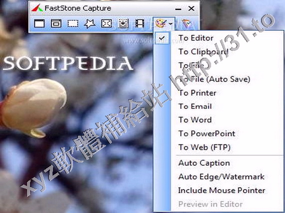 windows/web pages. You can choose to send captures to editor,